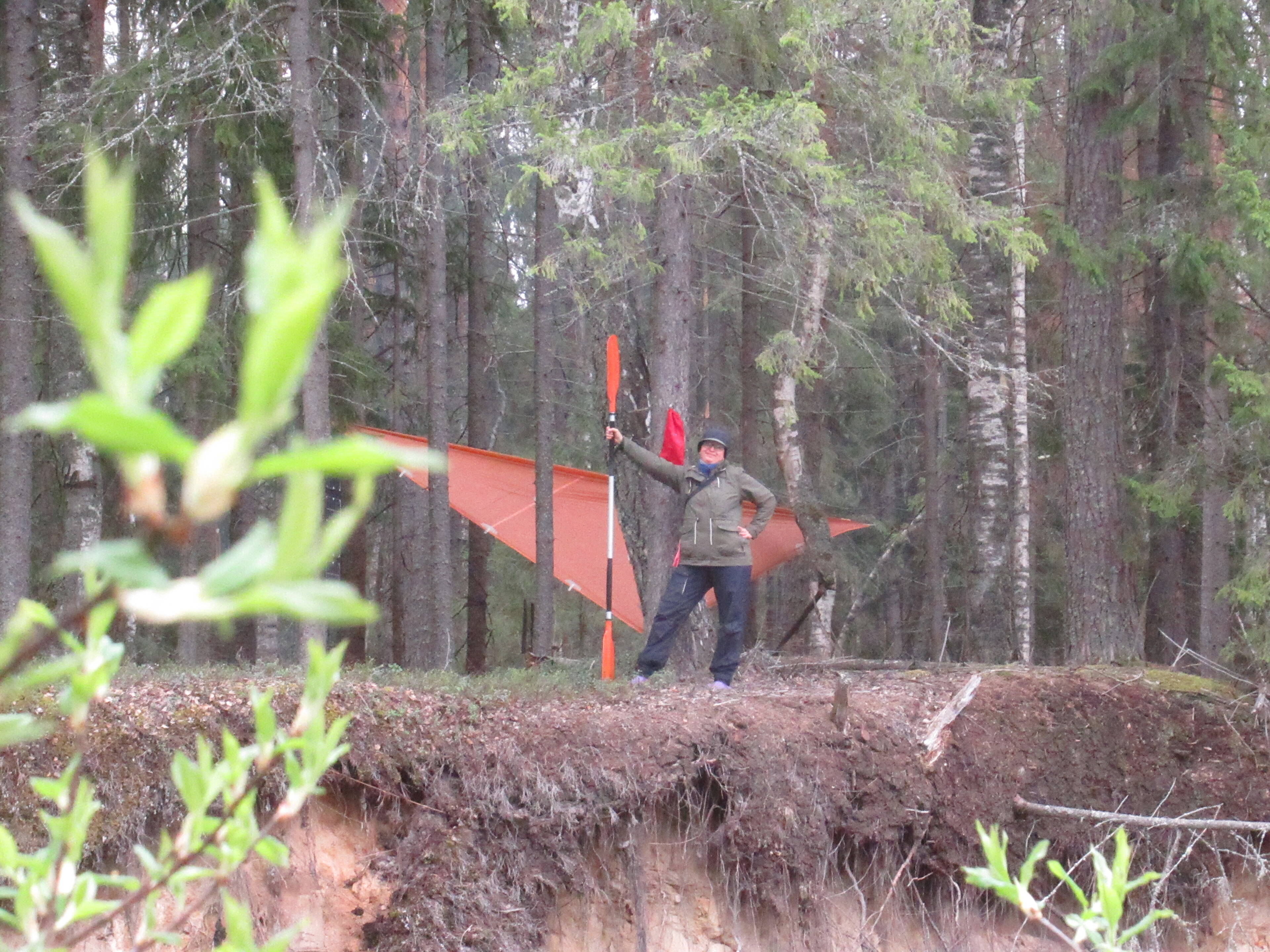 До 6 вечера, преодолевая встречный ветер, прошли ещё километров 17-18. В очередной раз поражаюсь скорости течения Ветлуги. Мы по привычке жались поближе к берегу в затишке и были потрясены, увидев, что Юстас по центру реки против ветра в одно весло, чуть ли не обгоняет