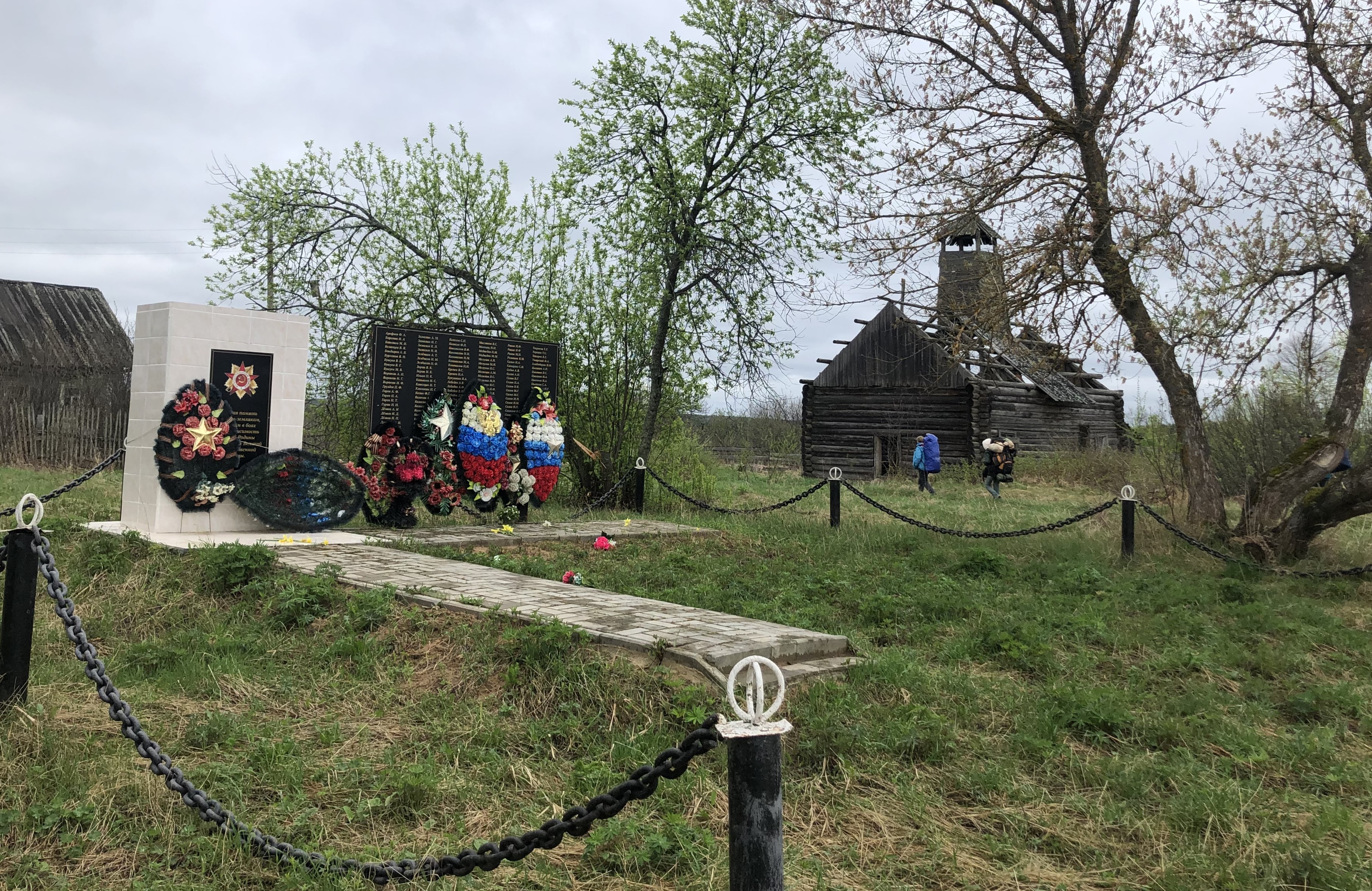 1 мая планировали зачалиться в Палаустном, неспешно посушиться (погодка слишком изменчивая), но пронесло мимо, и минут через 10 тормознулись у поклонного креста на высоченном берегу. Древнее село Сквозники постепенно превращается в дачный посёлок, но старинные дома с наличниками обновляют, а не обшивают сайдингом. Симпатично.