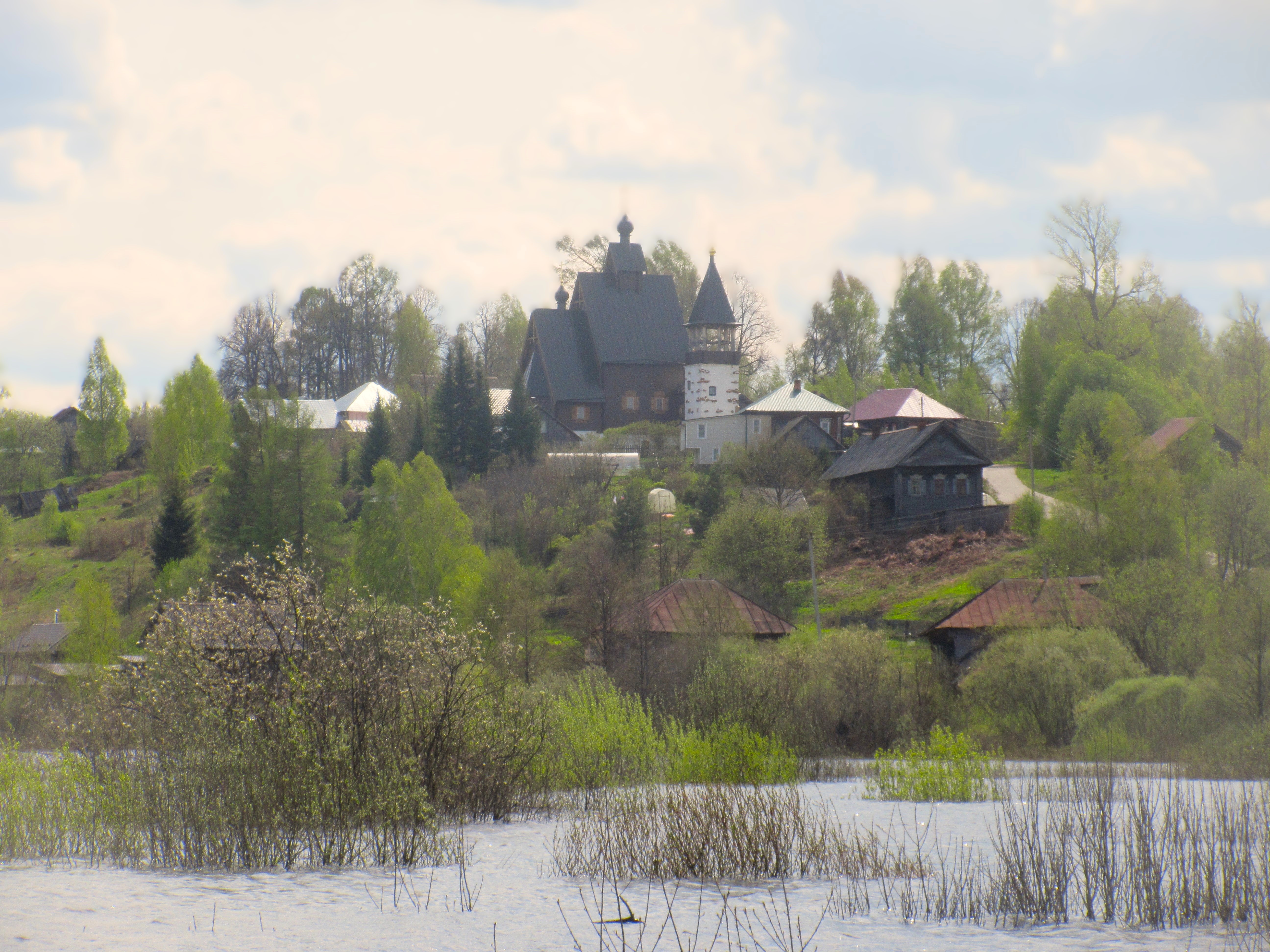 ) до горизонта, затопленные кусты, протоки, озёра. На взгорке открылся шикарный киношный вид на село Лапшанга.