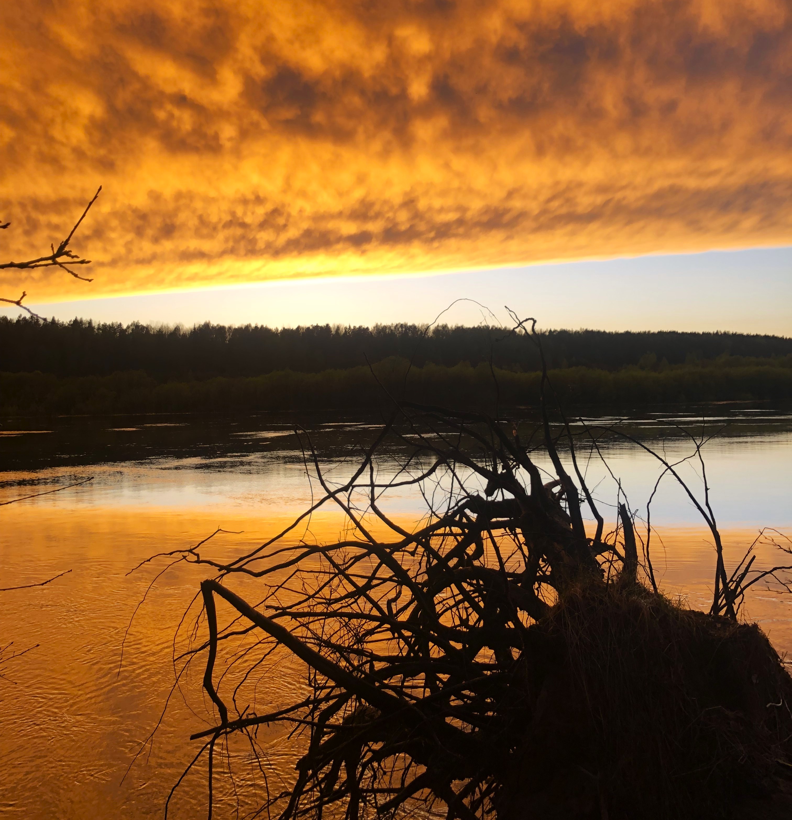 . Были б на воде – наверняка кильнуло. Ужас оказался недолгим и наградой феерический жёлто-розово-багровый закат и чёрные облака.
