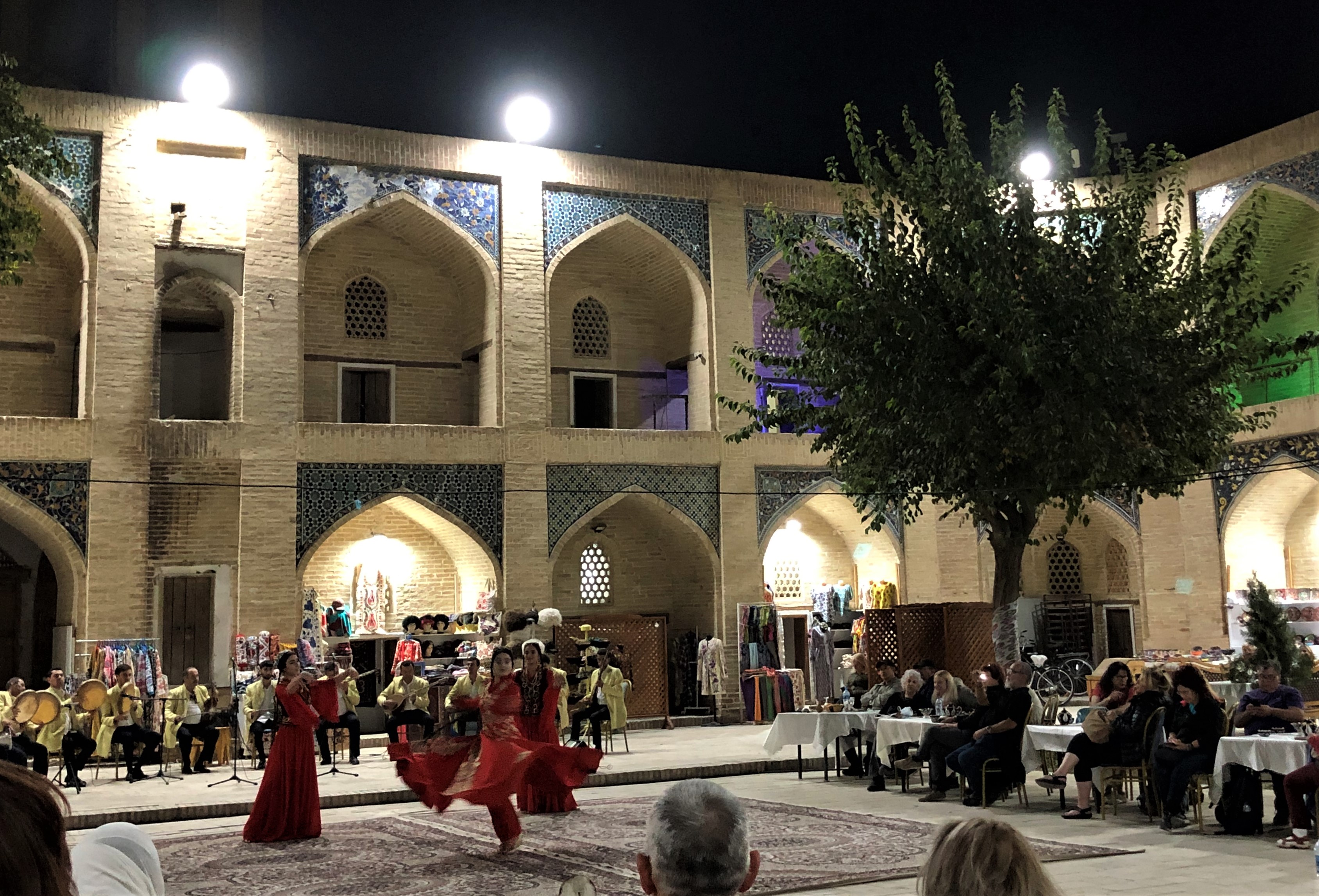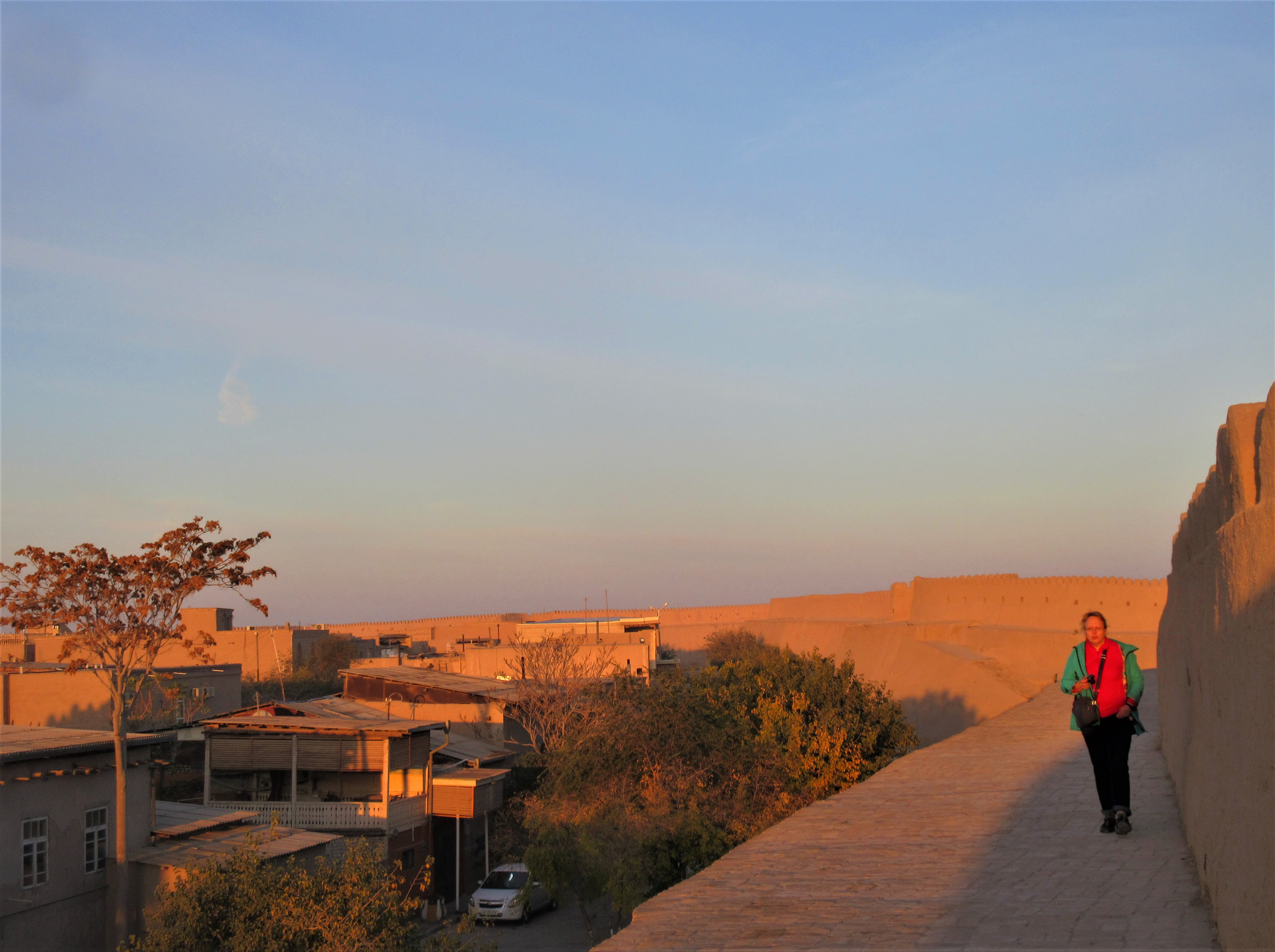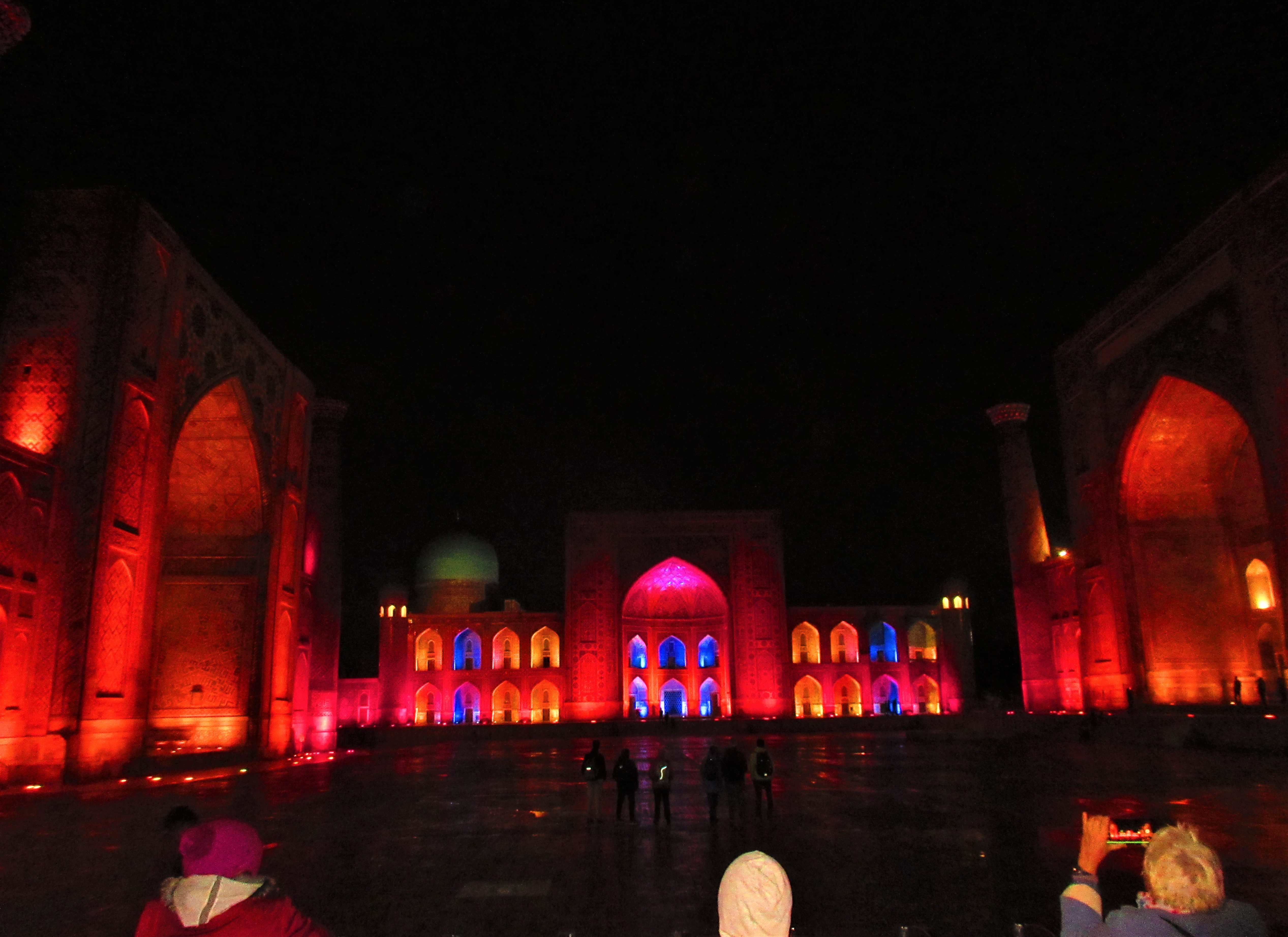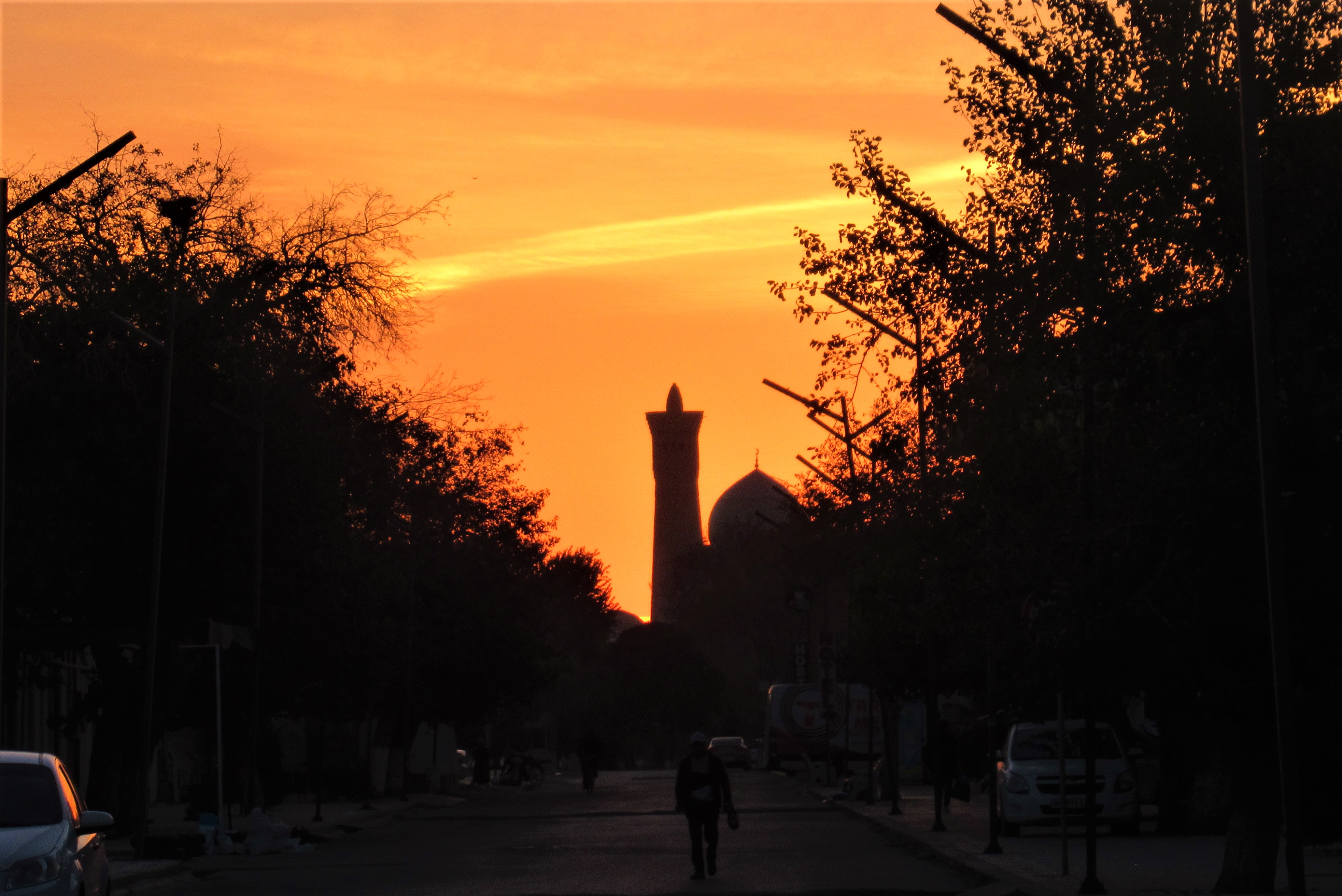 Старинная крепость, подсвеченные старинные медресе, галдящие и стрекочущие деревья.