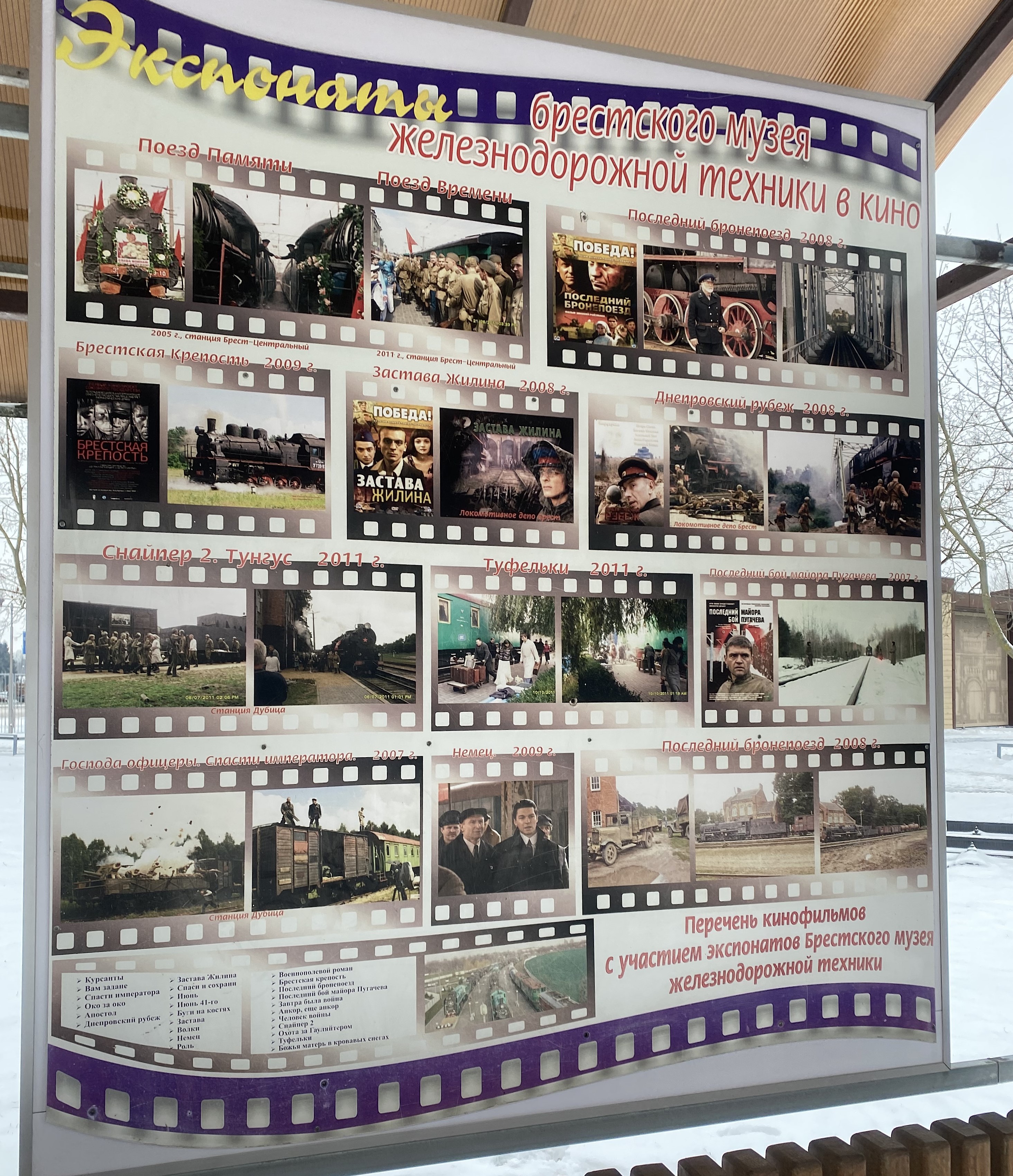 Брестский ухоженный и грамотный. Всё покрашено, у каждого экспоната табличка с пояснениями; локомотив в разрезе со всеми потрохами. Ко многим приставлены лесенки. Но, увы, видимо, зимой почти все кабины и вагоны закрыты.