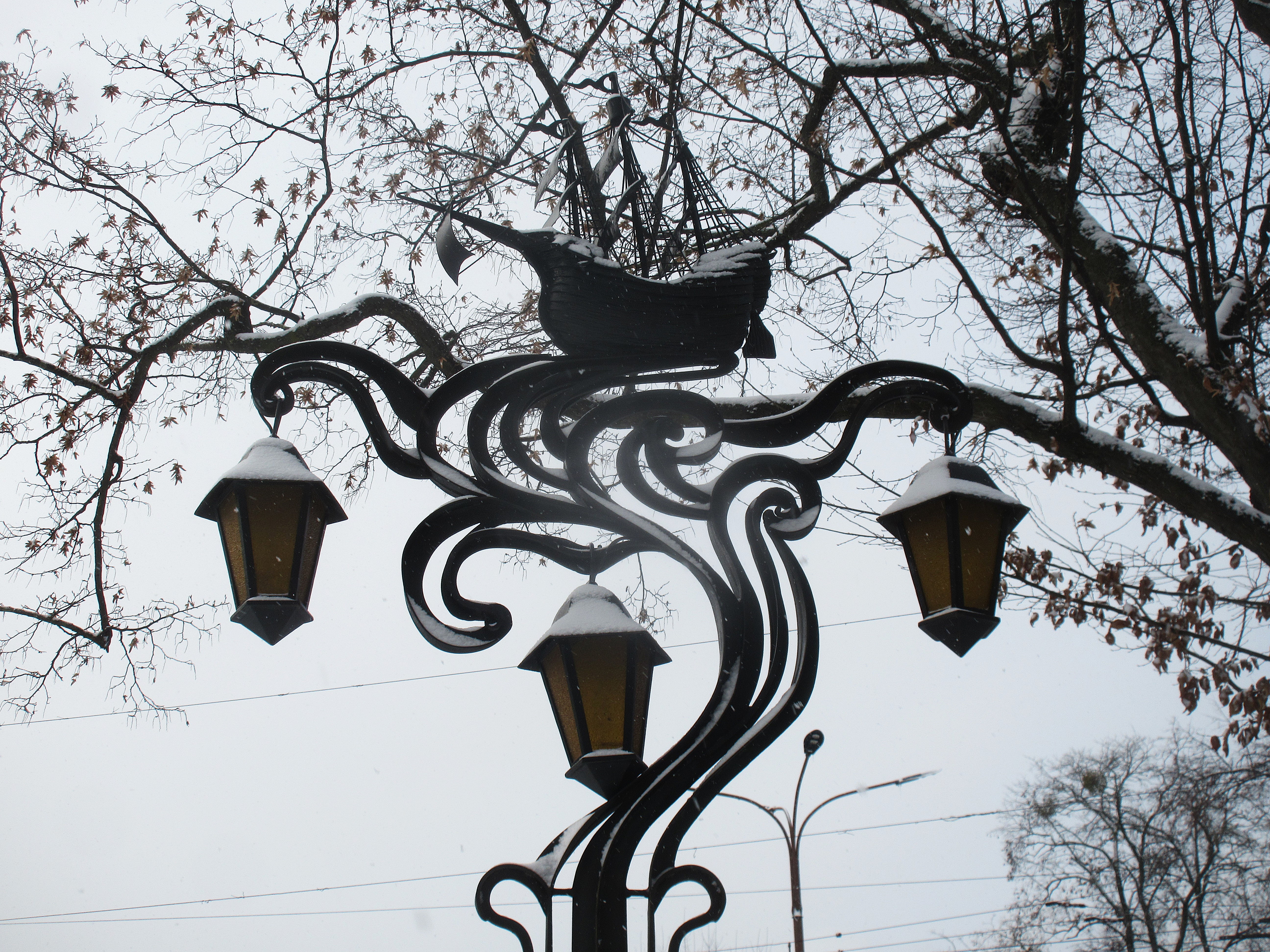 Фонари. Кованые. Сюжетные. С фантазией. Много. Очень много. На двухкилометровом бульваре около полусотни, а может и больше офигительных композиций
