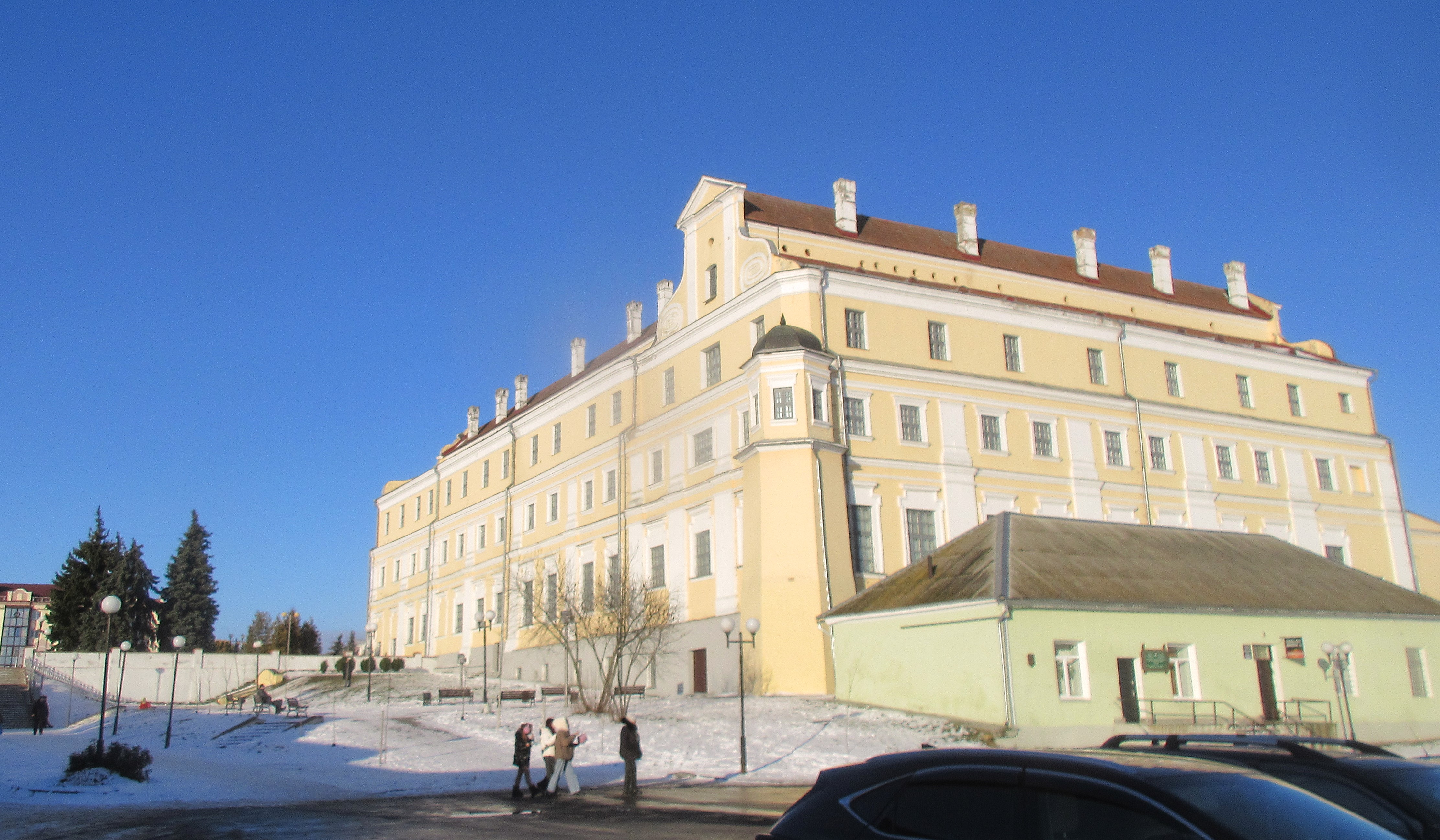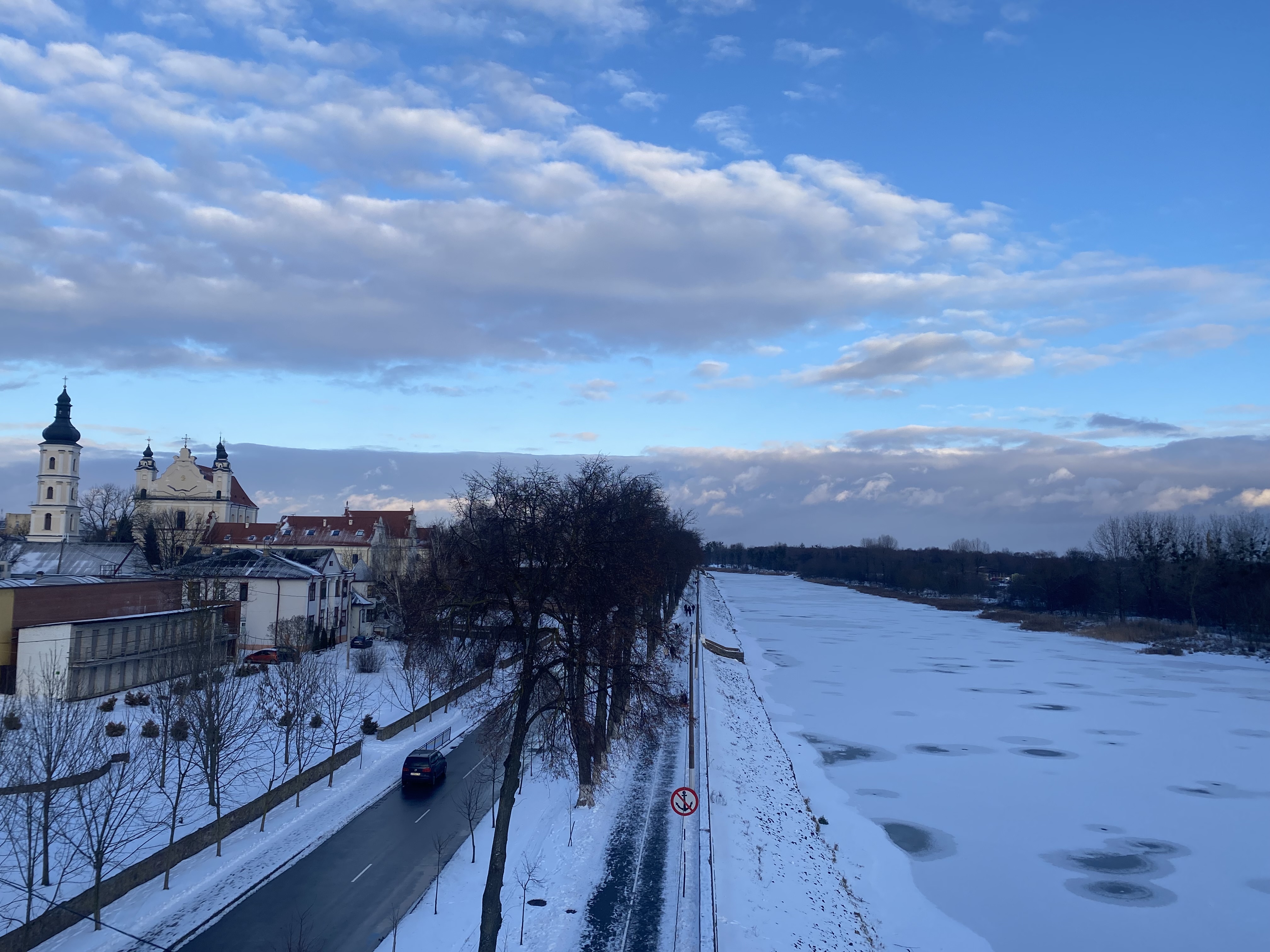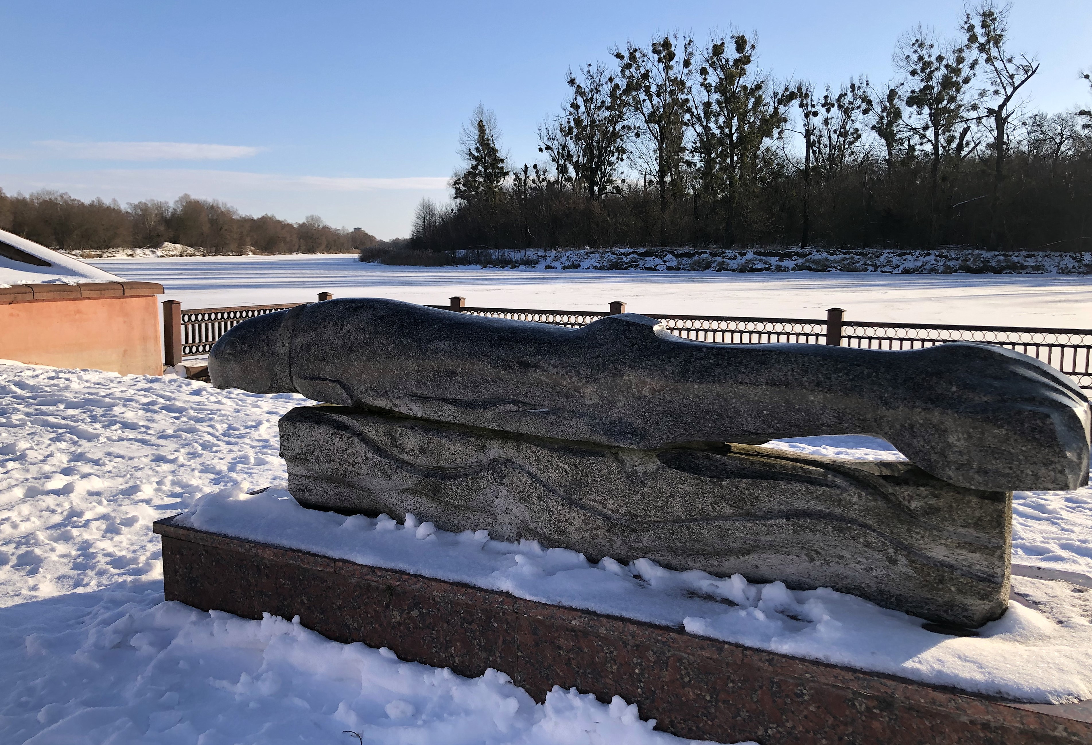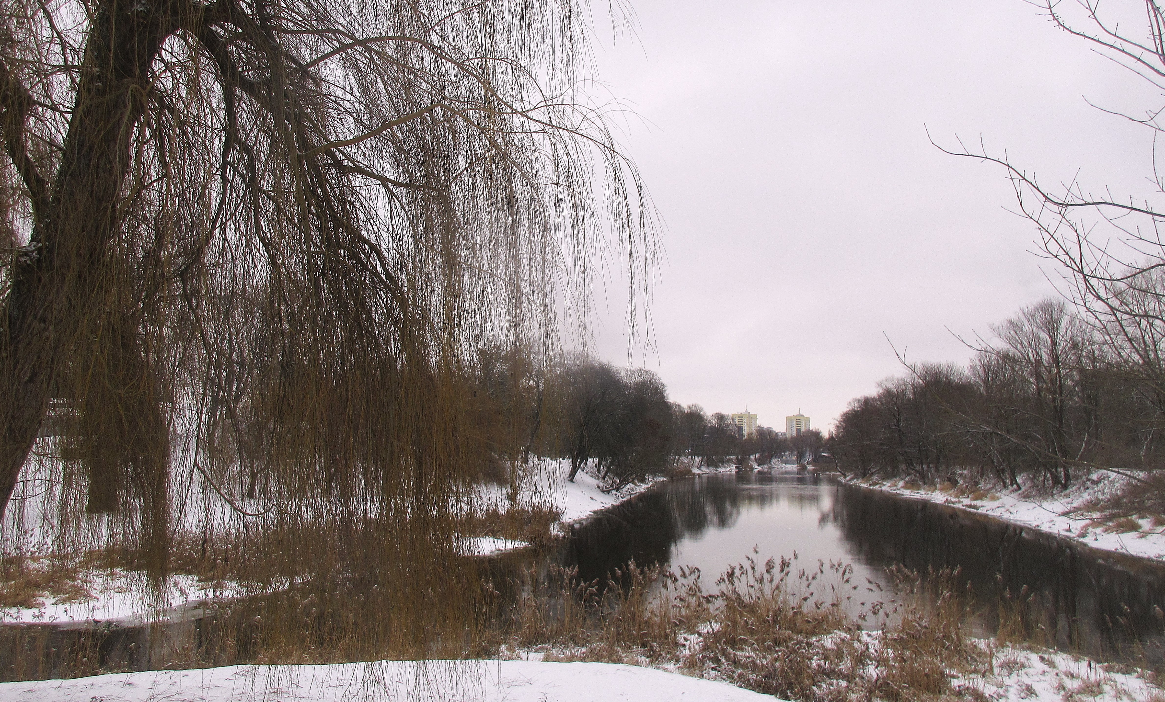 К тому же, несмотря на зиму, просматривается прекрасный парк. Острова, мосты через Мухавец, плакучие ивы, утки и лебеди.