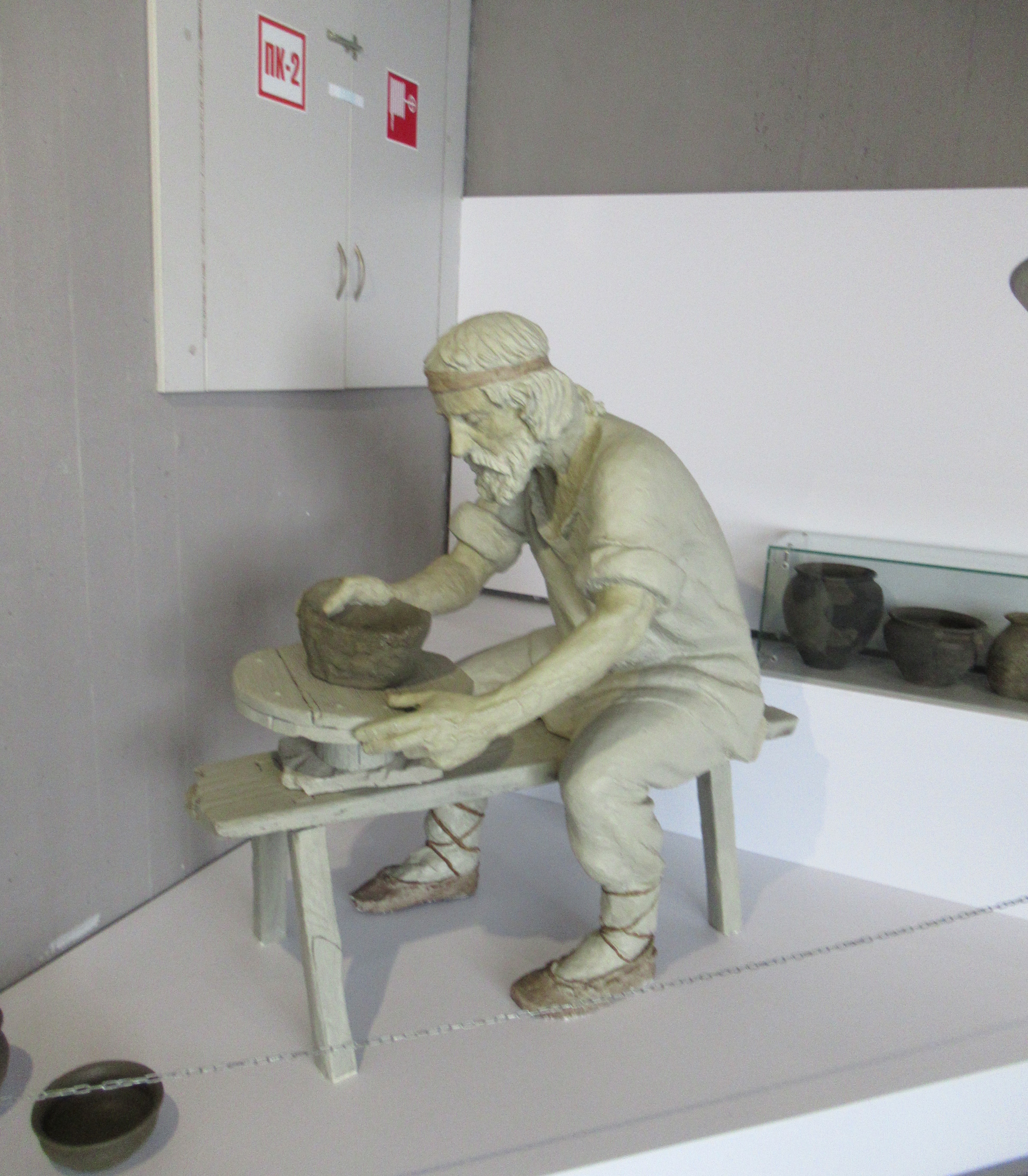 По периметру небольшие стенды с черепками-наконечниками-бусинами. Манекены в древней одежде, скелет коровы и пр.