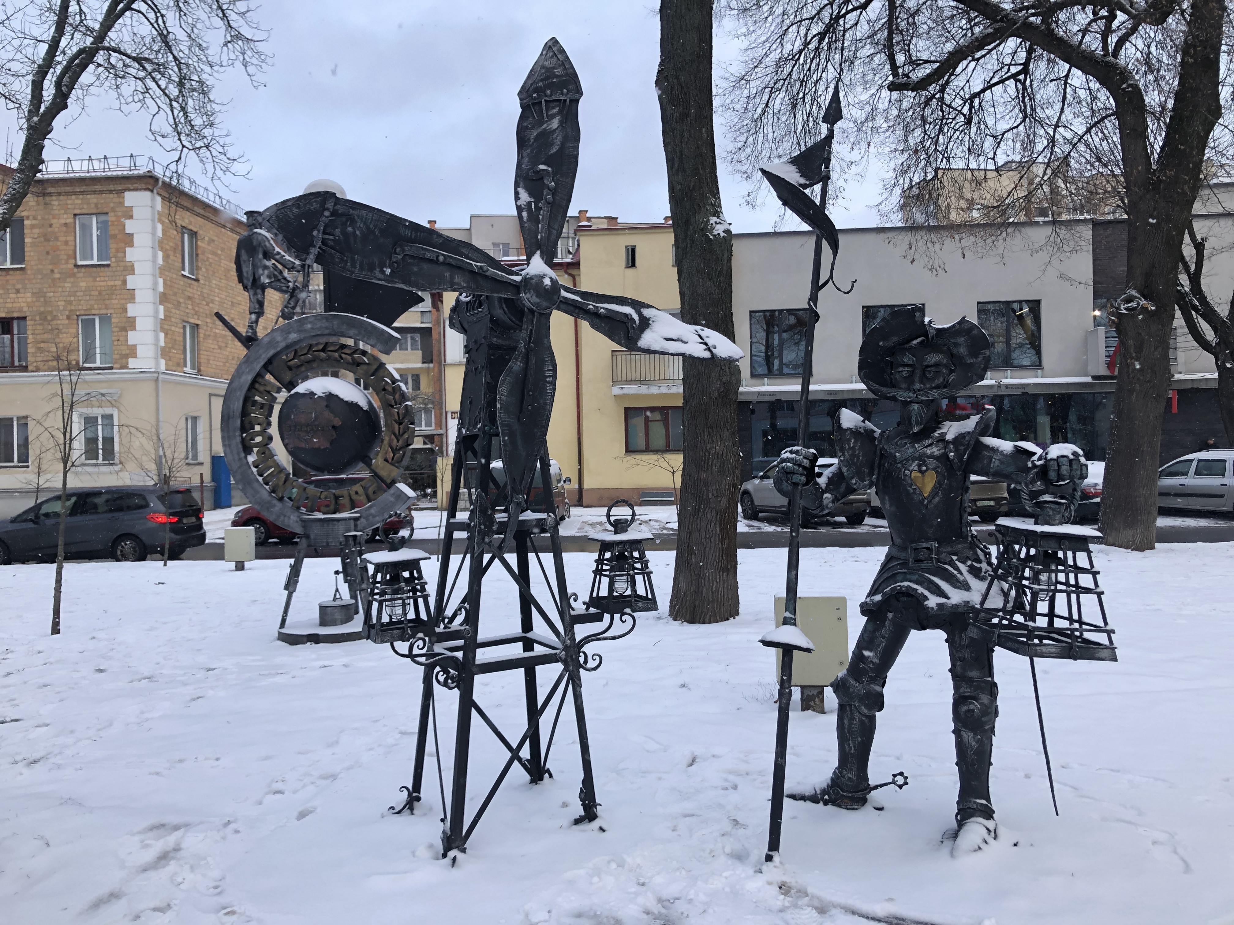 БелАлко; таможня; кораблик на глобусе от ресторана "Жюль Верн" и официант от "Старого города"; дворник от мусорного завода; сантехник; железнодорожники поставили старуху Шапокляк и Гену и ещё-ещё-ещё... Зорро, Дон Кихот, десантник и топограф....